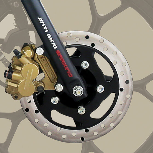 The rear features advanced Nitrox Spring-on-Spring suspension. This technology makes the ride incredibly comfortable. It uses nitrogen gas canisters, which effectively absorb small and large jolts. The front has telescopic fork suspension. The suspension settings are calibrated so that both the rider and pillion experience minimal jolting even when riding on bad roads or potholes.