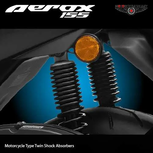 Motorcycle Type Twin Shock Absorbers is now featured on Yamaha Aerox 155, this makes rides extremely smooth and lets users cruise through anything!