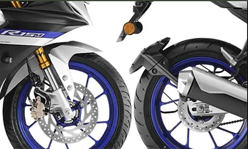 Both side radial tubeless tires are placed for the new R15 M. Front tire measurement is 100/80-17M/C 52P and the rear section measurement is 140/70R17M/C 66H.